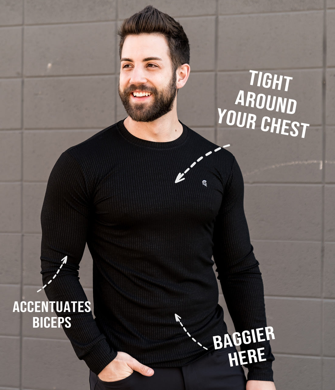 Argo uses a tapered cut fit that accentuates your chest and minimizes your waist.